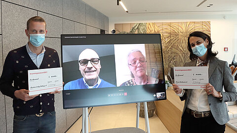 Zur Spendenübergabe wurden die Vertreter der sozialen Einrichtungen, Ulrich Schmidla (Christan-Liebig-Stiftung e.V.) und Helga Armbruster (Forum Wiedenest e.V.) digital über eine Telefonkonferenz zugeschaltet. Bei der Gelegenheit schilderten sie ihre eindrucksvolle Arbeit vor Ort. Eindrücke, die auch Natalie Mekelburger und Torben Kämmerer nachhaltig begeisterten.