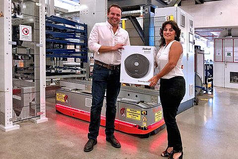 Ein so fähiger und verlässlicher Kollege wird natürlich schnell zu einem geschätzten Teammitglied – auch wenn er „nur“ ein Roboter ist. Schnell kam die Idee auf, das unpersönliche Kürzel „FTS“ durch einen sympathischen Namen zu ersetzen. Also starteten wir einen internen Namenswettbewerb, der zu zahlreichen kreativen und lustigen Ideen führte. Die Palette reichte von ANNA, dem Namen der Ehefrau des Firmengründers Fritz Müller, über COLOSS, Coroplast Logistik Support System, bis zu DOBBY, einem Hauself bei Harry Potter. Die Wahl fiel schließlich auf CORA, was soviel bedeutet wie Coroplast & Roboter & Automation. Also, willkommen im Team CORA!