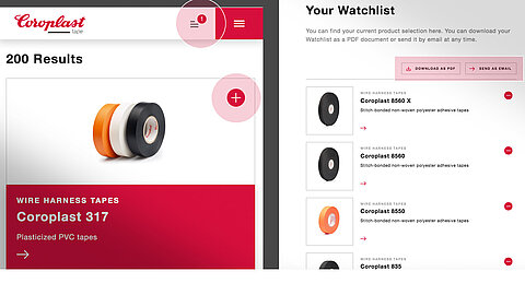 Die Merkliste bereichert die gerade erst im April 2020 gelaunchten Websites. Die neuen Auftritte der Coroplast Group und der drei Tochtermarken präsentieren unsere internationale Markenwelt und machen unseren hohen Serviceanspruch erlebbar. Das wird im Produktbereich von Coroplast Tape besonders deutlich: Neben der neuen Merkliste können sich unsere Kunden über klar strukturierte Produktlisten, einen Schnellzugriff auf die Produktkategorien, schlaue Filterfunktionen und direkt erreichbare Ansprechpartner freuen.