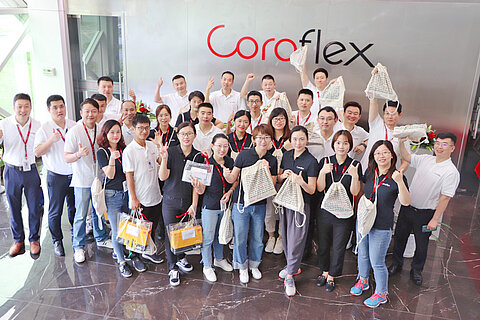 The Kunshan site of the Cable & Wire Division celebrated the eagerly awaited launch of our new Coroflex brand with a colorful program. The prelude was the installation of the new lettering on the facade of our spectacular building. After a short thank-you speech by R&D Director David Zheng, the new logo was ceremonially unveiled in the building's reception area. This task was performed by Carrie Zhang and Fred Gu, two of our "Best Employee" award winners from the past months. This is a clear statement, because also for our new brand highly motivated employees are a decisive success factor.