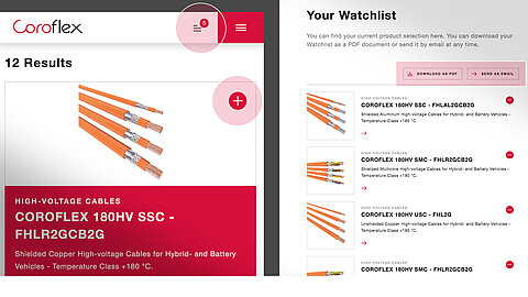 The Watchlist is a valuable addition to our product selection on the websites that were launched in April 2020. The new appearance of the Coroplast Group and the three subsidiary brands present our international brand world and point out our high service standards. This becomes particularly clear in the Coroflex product area: In addition to the Watchlist, our customers find structured product lists, clever filter functions and can directly reach their sales contact.